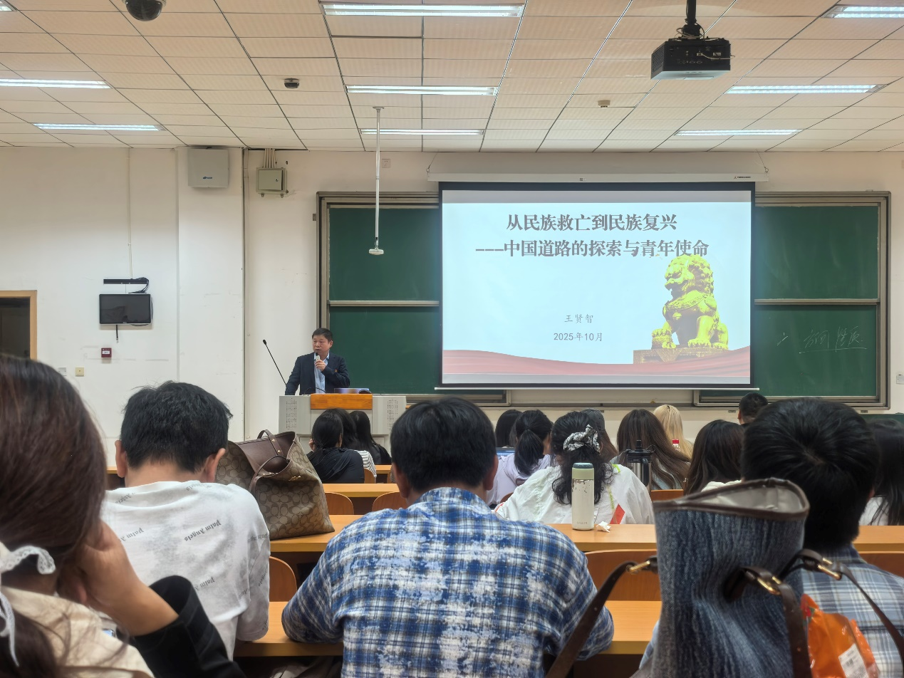 会议的最后一项议程,由院党委书记王贤智给新生上入学第一堂党课。党课以“从民族救亡到民族复兴---中国道路的探索与青年使命”为主题,从近代中国探索救国道路的艰辛历程、新中国成立后的国家面貌巨变、新中国成立后各领域的辉煌成就以及悟百年征程,担青年使命四个方面进行生动讲述。最后他勉励同学们赓续红色血脉,坚定理想信念,在新时代的伟大征程中书写青春华章。