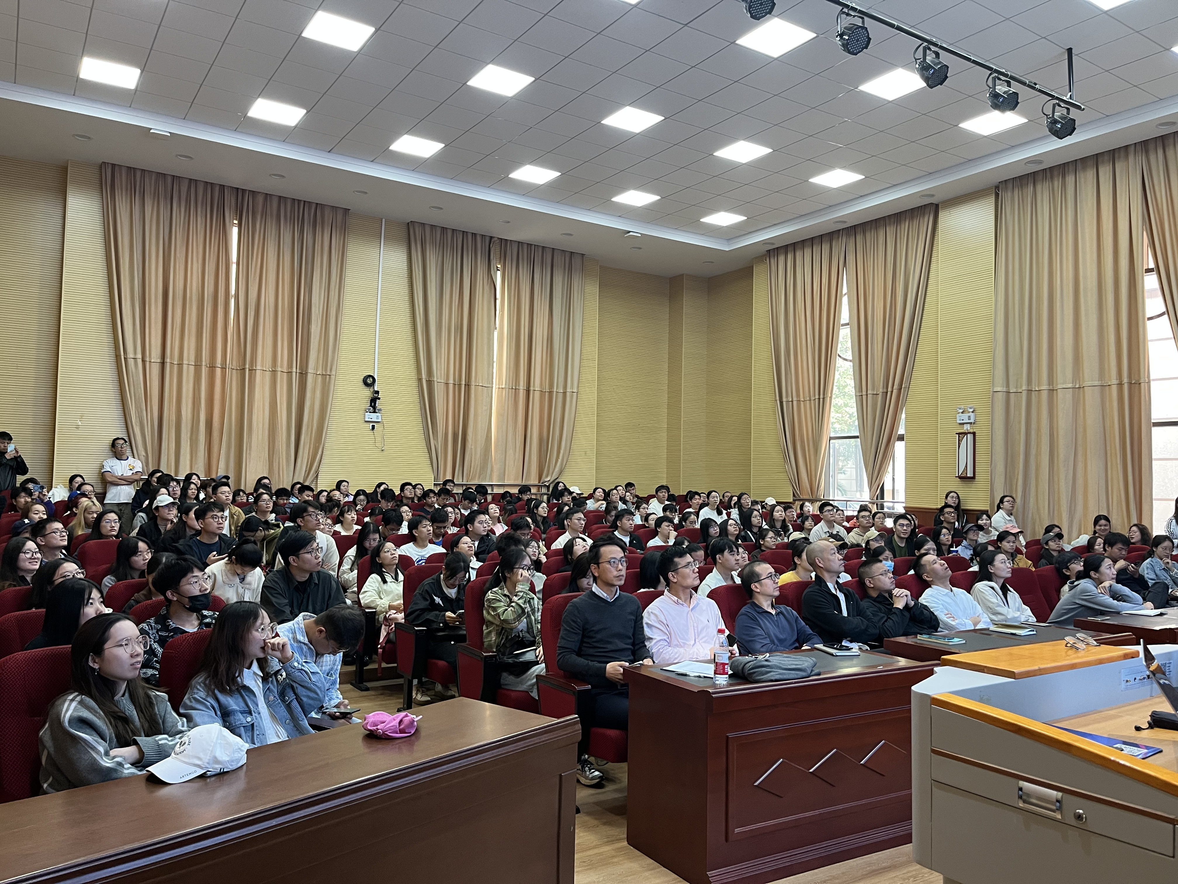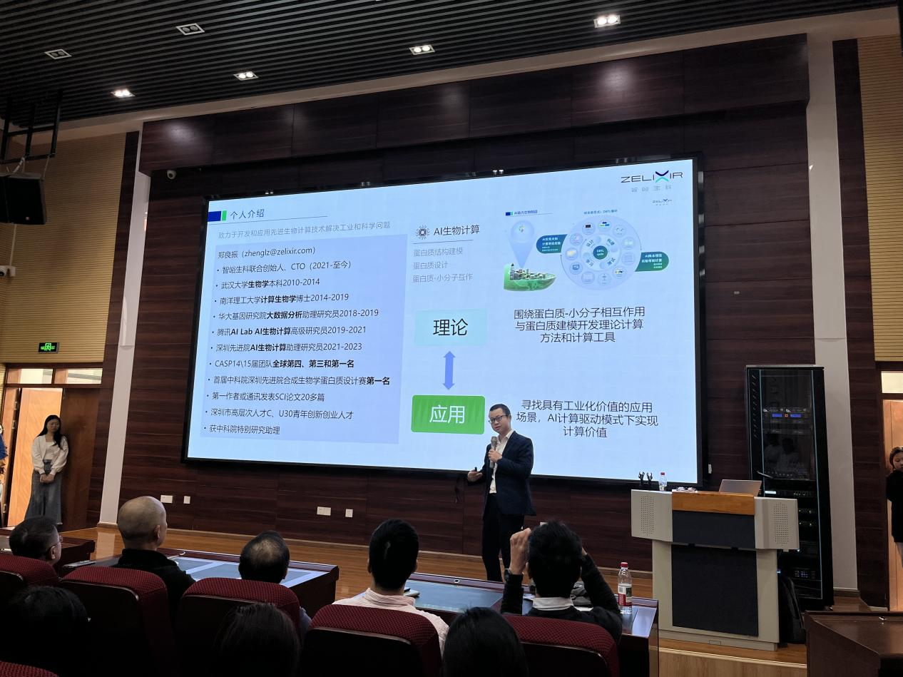 随后,郑良振博士在学院报告厅为全院师生带来了一场题为《数据驱动的蛋白质-小分子相互作用及其应用》的精彩学术报告。报告深入浅出地介绍了当前生命科学领域,特别是在蛋白质-小分子相互作用理论、算法与应用方面的前沿技术突破及其在产业中的应用场景与未来潜力。郑博士通过生动的案例和数据,分析了技术从实验室走向市场的关键环节与挑战,激发了在场师生的浓厚兴趣和热烈讨论。