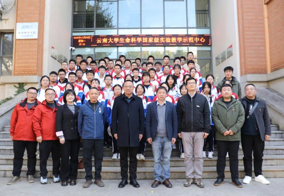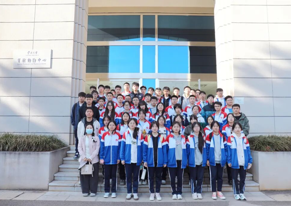 仪式结束后,师生们合影留念,随后分组前往实验教学中心和动物中心开展实地参观。此次研学活动由云南大学生命科学学院精心组织,带领钟英中学学子走出课堂、走进实验室,感受生命科学前沿研究的魅力。活动有效激发了同学们对科学探索的浓厚兴趣,也为两校携手推进育人模式创新写下了生动的实践注脚。