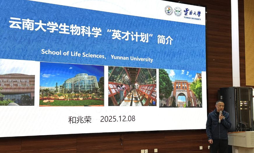 在学院介绍环节,王贤智书记详细阐述了云南大学生命科学学院的发展历程、学科优势、师资力量及科研成果,让学子们对学院的发展历程与研究方向有了全面认识。