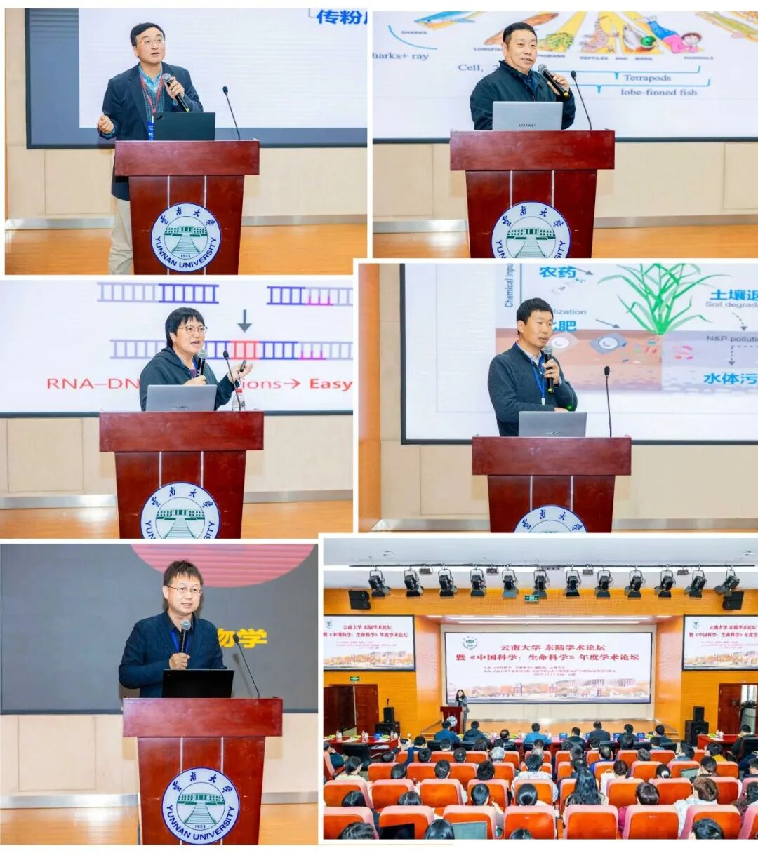 编委会后,举办了“《中国科学:生命科学》年度学术论坛暨云南大学东陆学术论坛”。瞿礼嘉院士、何舜平院士、王二涛教授、高彩霞研究员、刘光慧研究员先后作学术报告,分享了植物育种、水生生物学、微生物共生、基因编辑、衰老研究等领域的最新研究进展。曹晓风院士和云南大学段兴武副校长在论坛上致辞,张克勤院士等200余名云南大学师生以及《中国科学:生命科学》部分编委开展了学术交流与研讨。论坛由云南大学生命科学学院院长于黎教授主持。