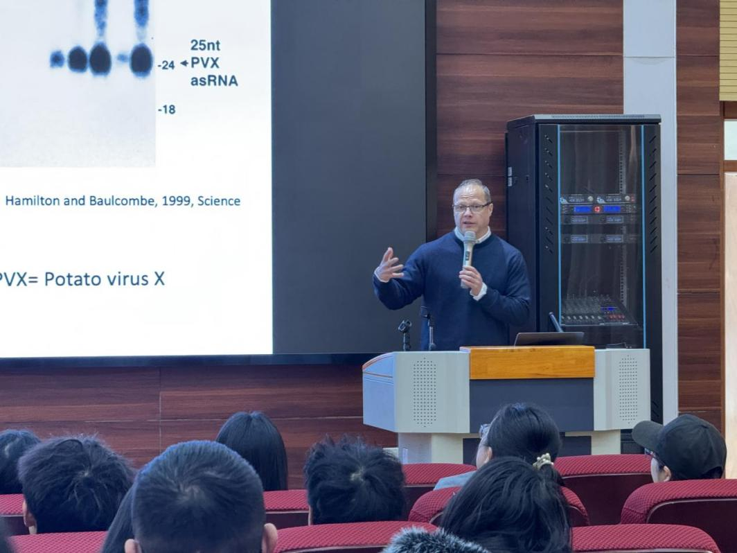 Tamas Dalmay教授系分子病毒学博士,曾于剑桥大学David Baulcombe实验室从事博士后研究,2002年加入英国东安格利亚大学,2014年起担任生命科学系主任。他在Science、Cell等国际顶级期刊发表多篇研究成果,出版学术著作10余部,现任欧洲食品安全局转基因生物小组副主席,并于2023年获批中国科学院国际人才计划“国际访问学者”项目。报告中,Tamas Dalmay教授围绕其核心研究方向,系统介绍了团队开发的实验方法与技术路径,并结合实际案例展开深入解析。互动环节中,现场师生踊跃提问,Dalmay教授一一给予细致解答,学术交流气氛热烈。