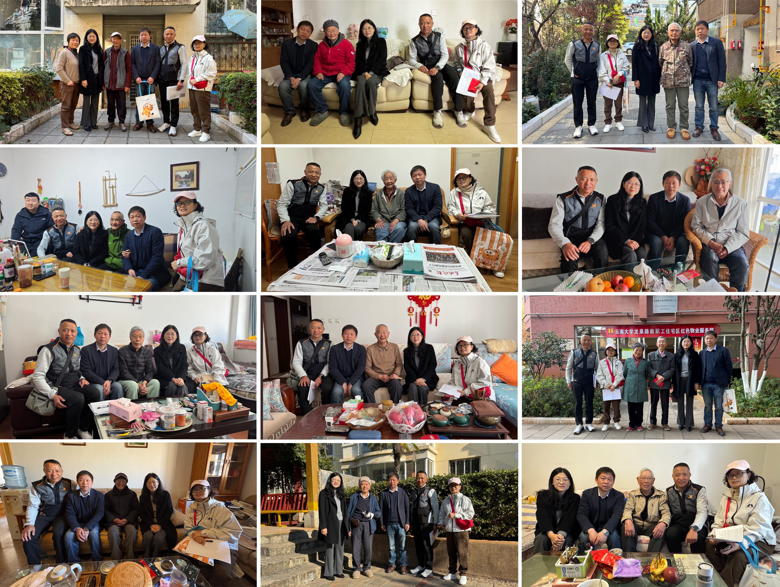 为深入贯彻落实校党委组织部、校工会关于切实做好2026年元旦春节期间走访慰问工作的部署要求,进一步弘扬尊老敬老优良传统,传递学院对离退休教职工的关怀与温暖,27日,云南大学生命科学学院党委书记王贤智、院长于黎、副院长和兆荣一行,以及离退休工作相关老师,先后前往云南大学龙泉路教职工住宅区、东一院住宅区、东二院住宅区和北院住宅区,深入老教师家中开展走访慰问,为学院退休老领导、老党员及老教师代表送去组织的关怀与新春的祝福。