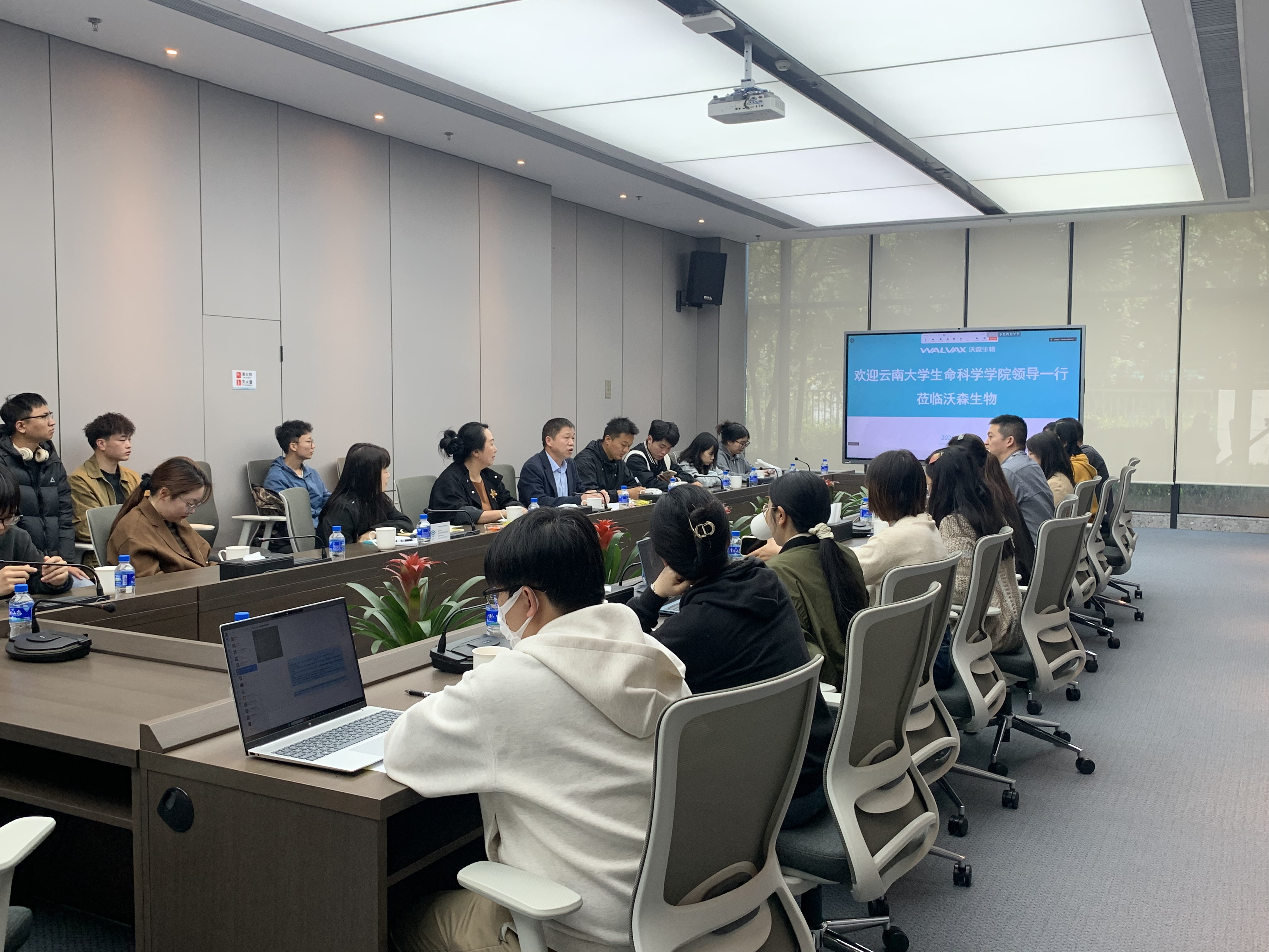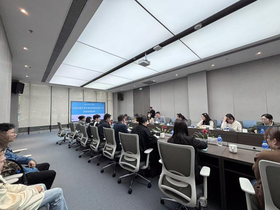 云南沃森生物技术股份有限公司人力资源总监兼智能信息总监宋鹏飞,研发部、项目管理部、发酵和纯化研究室等各部门负责同志11人参加会议。宋鹏飞总监对学院一行表示热烈的欢迎,对已在沃森工作的云大毕业生职业能力和职业态度进行了充分肯定和认可,期待能有更多优秀的云大学子将校园里所学的知识转化为专业实践能力,树立正确的就业观,与企业的人才需求适配、未来与企业共同成长。王贤智书记表示,学院始终以学生就业与成长发展为核心,坚持应用型、创新型人才培养方向。何雨洋副书记介绍了学院学科建设、专业特色及毕业生整体情况,希望以此次访企拓岗为契机,深化校企协同育人。双方就共建实习实训基地、课程共建、就业岗位精准推送等方面达成初步合作共识,为后续深度合作奠定坚实基础。交流现场,各部门负责人还与学生代表面对面沟通,解答同学们关于岗位要求、职业规划、实习待遇等问题,帮助学生明晰行业发展趋势与就业方向。