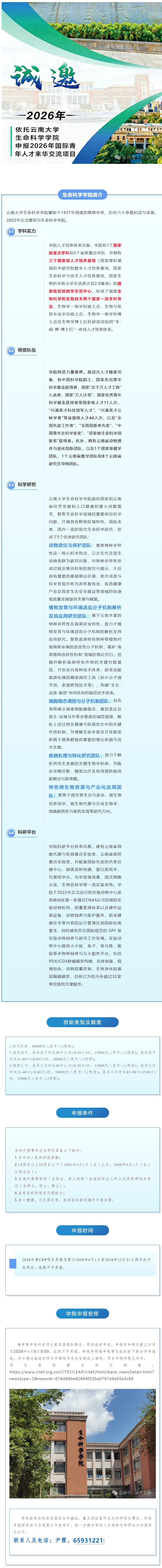 云南大学生命科学学院诚邀申报国际青年人才来华交流项目