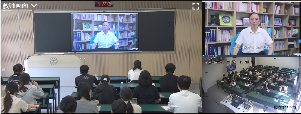“围坐智慧教室,抬头看见的不止是屏幕,还有远方前辈的目光。”云南大学格物楼智慧教室1107弧形灯带亮起,生命科学学院2023级的同学们迎来《病毒学原理》的“特别一课”—复旦大学袁正宏教授3分钟祝福视频。