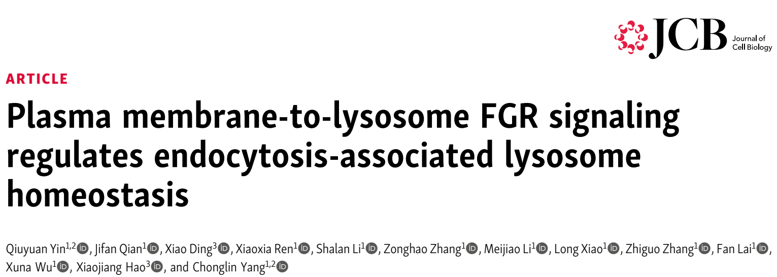 2026年1月6日,云南大学生命科学学院杨崇林/尹秋媛研究团队在国际知名学术期刊《Journal of Cell Biology》上发表题为“Plasma membrane-to-lysosome FGR signaling regulates endocytosis-associated lysosome homeostasis”的研究论文。