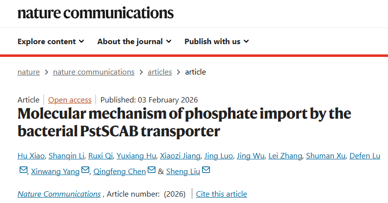 2026年2月3日,云南大学生命科学学院陈庆锋课题组联合国内多个课题组在国际著名期刊《Nature Communications》杂志(IF=15.7)在线发表题为“ Molecular mechanism of phosphate import by the bacterial PstSCAB transporter ”的研究论文。该研究通过冷冻电镜技术解析了细菌磷酸盐(Pi)内运蛋白复合物PstSCAB在静息态、前转运态和催化中间态的三维结构,并结合体外转运实验和计算生物学等手段为深入理解细菌的Pi摄取机制奠定了基础,并为开发以PstSCAB为靶点的病原菌感染干预手段提供了结构依据。