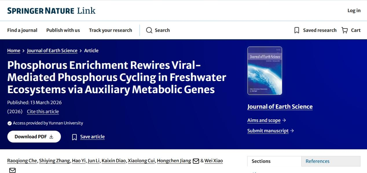 近日,云南大学、云南农业大学与中国地质大学(武汉)等科研单位首次系统揭示了磷富集对淡水湖泊微生物群落、病毒群落及其代谢功能的影响,为理解富营养化背景下病毒生态功能提供了全新视角。研究结果以“Phosphorus Enrichment Rewires Viral-Mediated Biogeochemical Processes in Freshwater Ecosystems”为题在线发表于国际期刊Journal of Earth Science(中科院1区TOP,IF 4.7)。