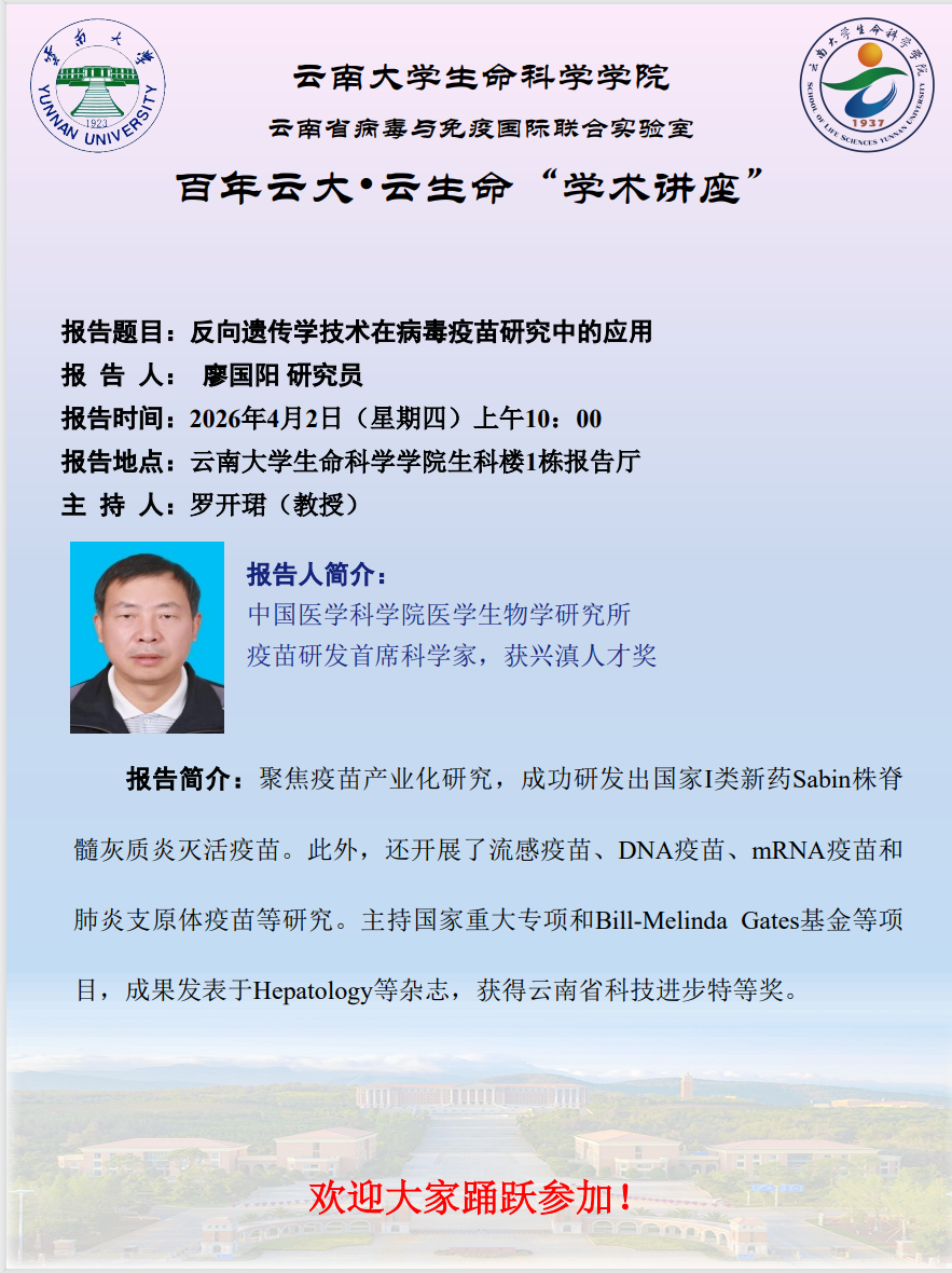 地址:昆明市呈贡区云南大学生命科学学院