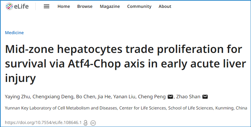 eLife |单昭/彭城课题组合作发现肝细胞的“生死取舍”策略:中区肝细胞通过Atf4–Chop–Btg2主动暂停增殖换取存活机会